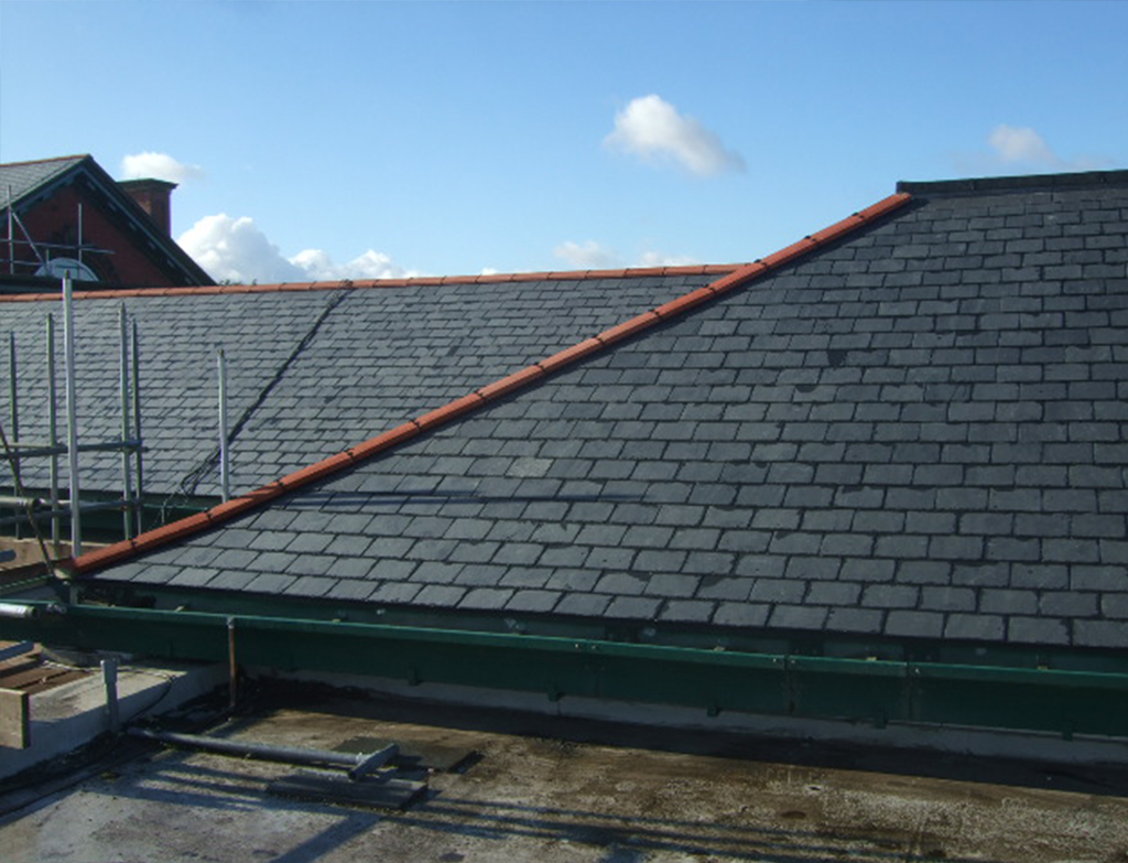 Attention to detail was a must, given the building’s status in a conservation area. All slates had to be double lapped, with Klober dry ridge and hip details throughout. All re-used slates were positioned on the sections of roof that could be best viewed from the public (Front entrance, side section adjacent to main road etc).
