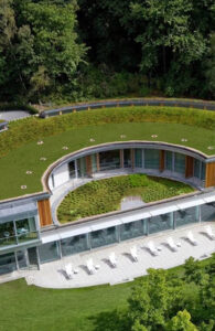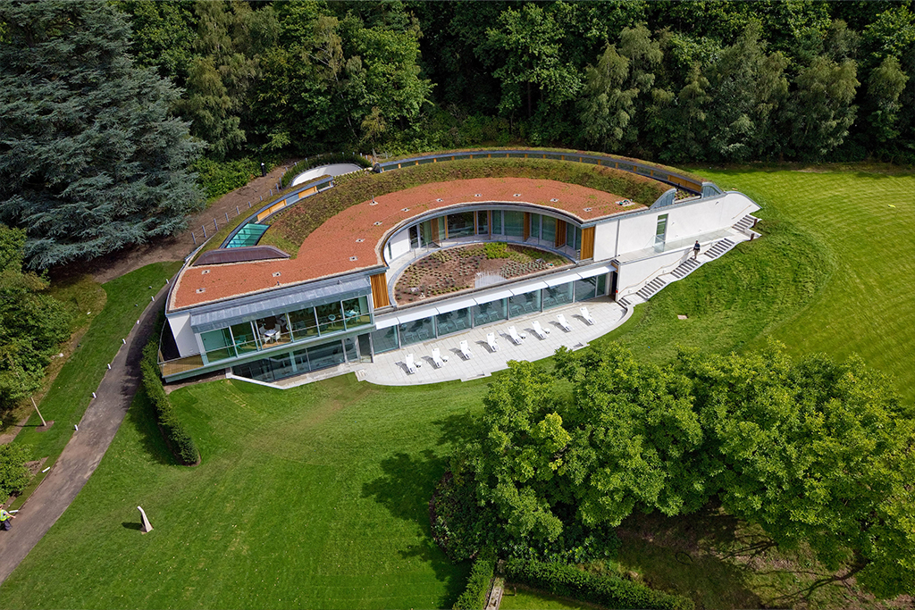 A total of 700m² of extensive and semi-intensive green roof system, the optimum solution for the unique semi circular design of the Spa’s pitched curved roof were installed over a Derbigum Warm Roof waterproofing system. Derbigum is a high performance membrane which was specified for its exceptional long-term performance and durability.