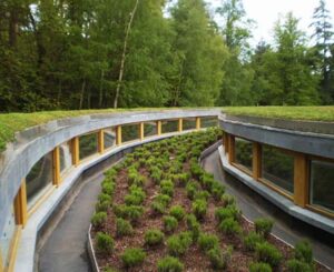 The building is camouflaged by the ZinCo green roof which is also being used to cultivate thyme, lavender, chamomile and other fragrant herbs for use in natural treatments at the Spa. The pioneering design, has kept the building’s volume and footprint to a minimum whilst intimately relating the spa to its sensitive green belt setting.