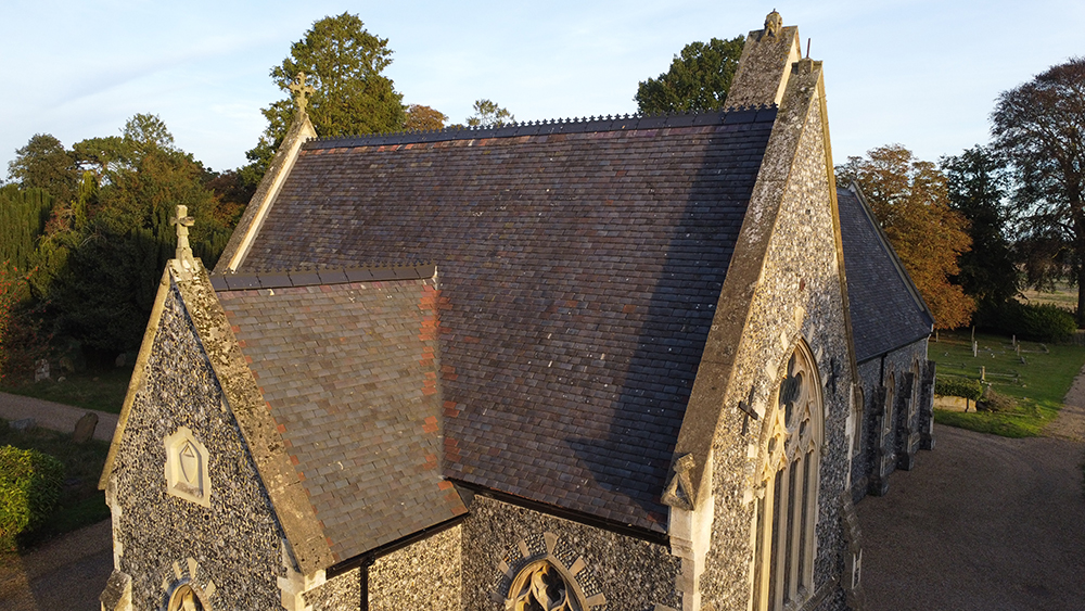 The process also involved reinstalling the set-aside handmade clay plain tiles, incorporating new tiles that closely matched the existing ones as much as possible. Additionally, in-line vents were installed below the ridge lines to ensure proper air circulation within the roof space.
