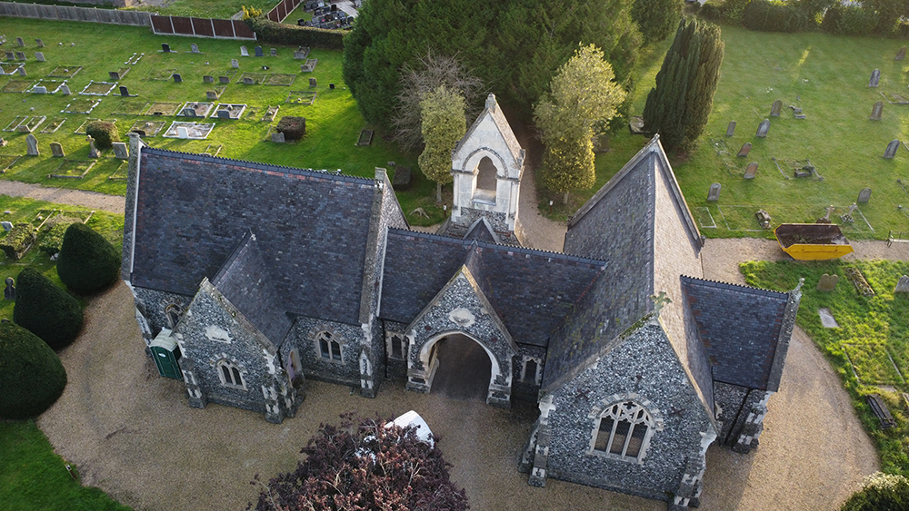 The refurbishment of the pitched roofs for the Diss Cemetery chapel and workshop included several crucial steps. Initially, we carefully removed and stored the existing roof coverings for reuse, considering the Grade II listed status of the building. We disposed of the old felt and battens to make way for new felt and treated battens installed across the roof area, accompanied by new counter battens to create an air gap for ventilation.